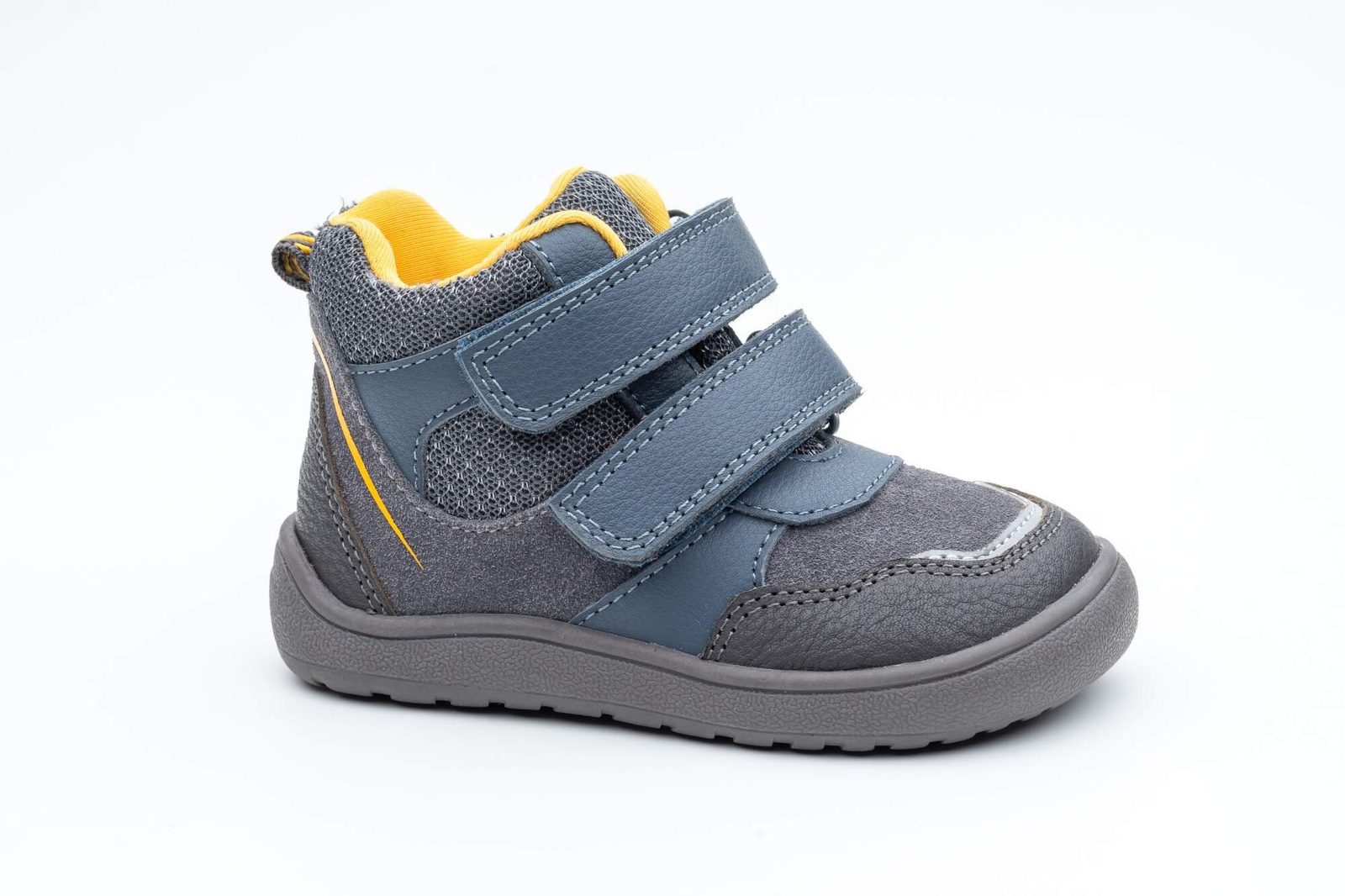 Protetika chlapčenské barefoot topánky s membránou BANET GREY | celoročná detská obuv na suchý zips | sivé členkové kožené topánky bez klenby s flexibilnou podrážkou
