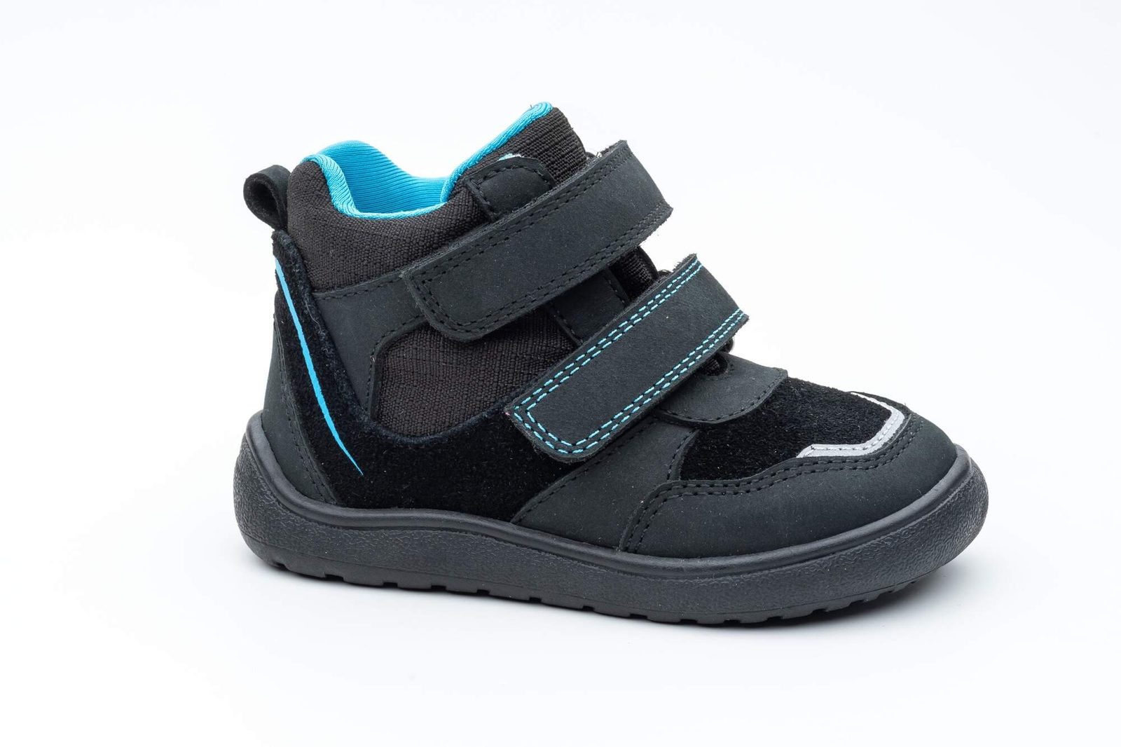 Protetika chlapčenské barefoot topánky s membránou BANET TYRKYS | celoročná detská obuv na suchý zips | tyrkysové členkové kožené topánky bez klenby s flexibilnou podrážkou