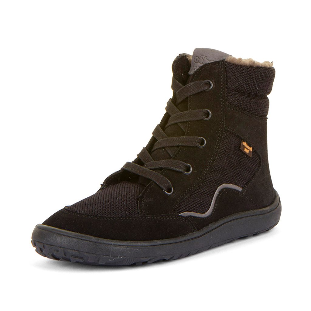 Detská kožená zimná barefoot obuv TEX WOOL GROW Black, Froddo G3160234-4in black s membránou Froddo.