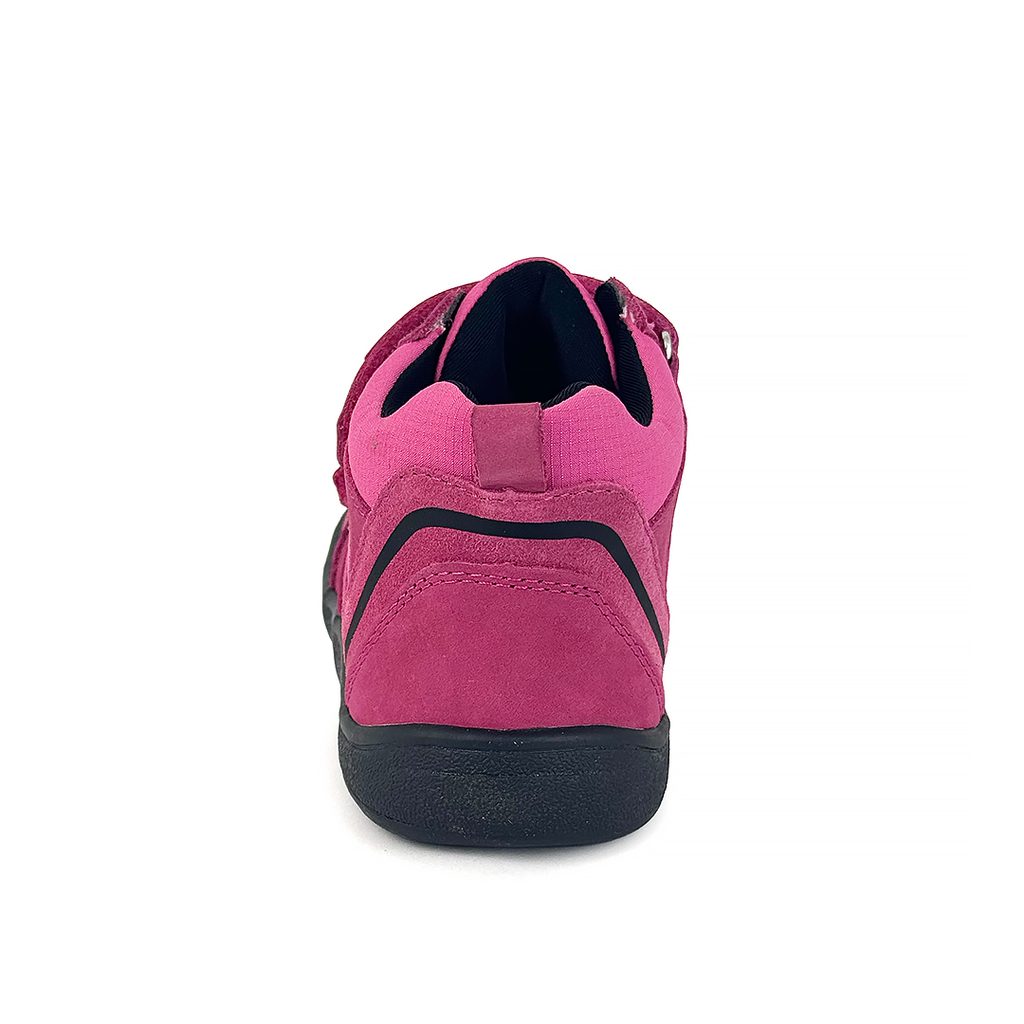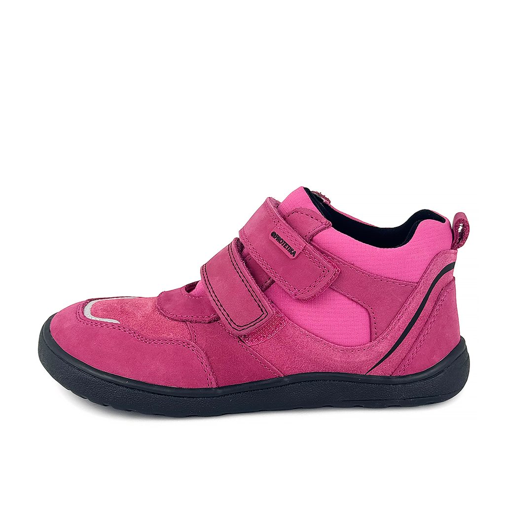 Protetika dievčenské barefoot topánky s membránou BANET FUXIA | celoročná detská obuv na suchý zips | fuchsiové členkové kožené topánky bez klenby s flexibilnou podrážkou