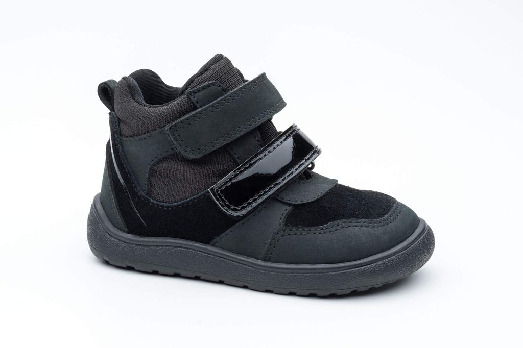 Protetika dievčenské barefoot topánky s membránou BANET NERO | celoročná detská obuv na suchý zips | čierne členkové kožené topánky bez klenby s flexibilnou podrážkou