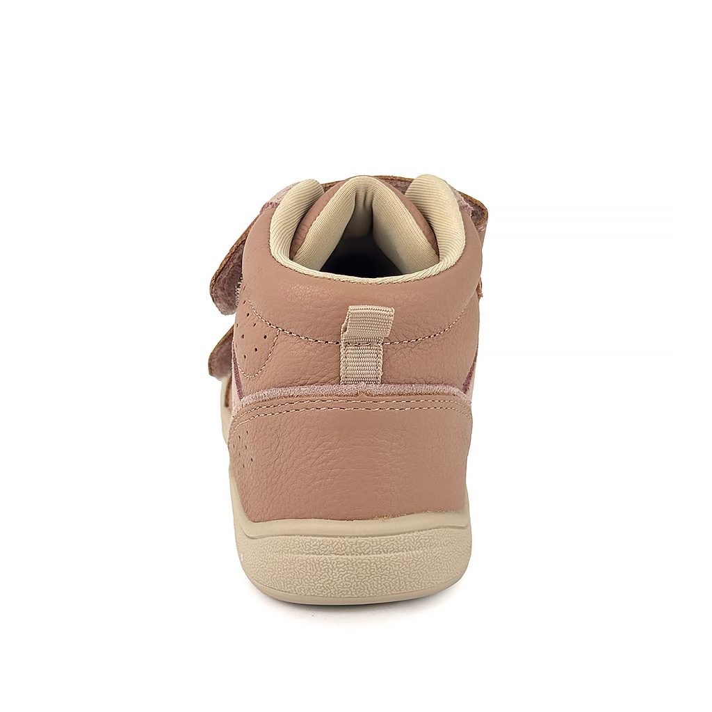 Protetika dievčenské barefoot topánky TIRA PINK | celoročná detská obuv na suchý zips | ružové členkové kožené topánky bez klenby s flexibilnou podrážkou