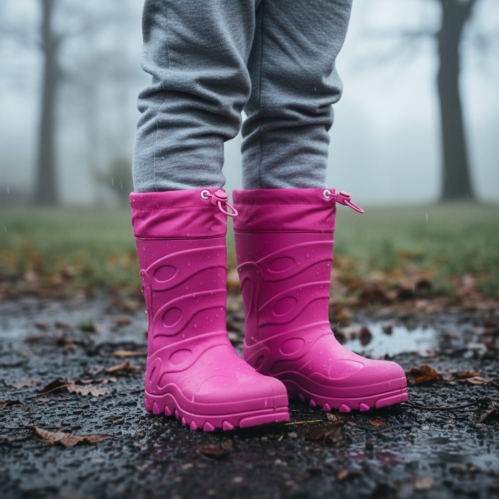 Detské gumáky pre dievčatá. Topánky sú vyrobené z gumy, podšívka s umelou kožušinou, gumáky sú veľmi ľahké a zároveň veľmi teplé. Čižmy majú praktický lem so šnúrkou na stiahnutie. Gumené čižmy sú jedinou vhodnou voľbou do vlhkého prostredia.