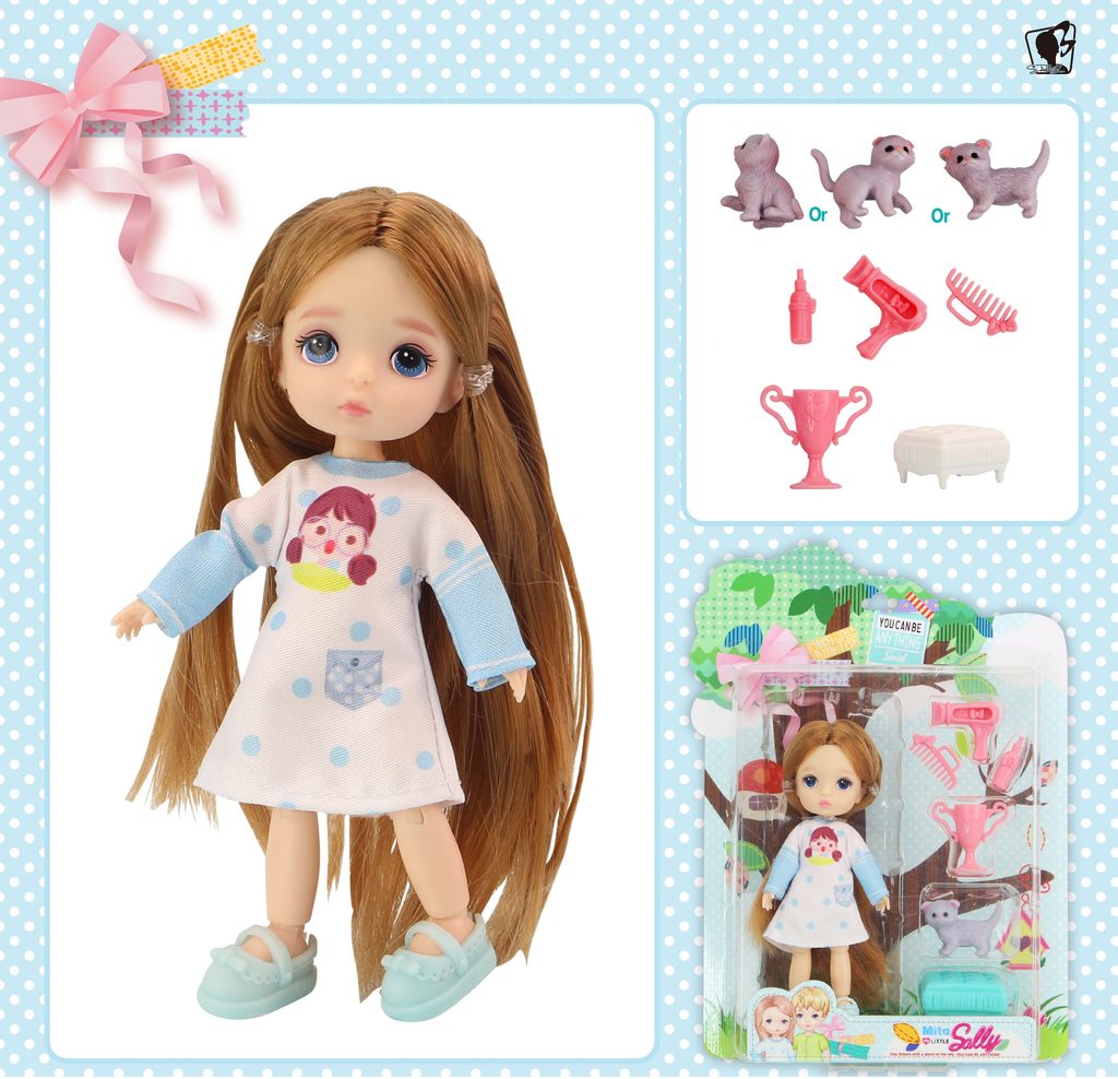 Panenka s kočkou set. Velikost 12,5 cm. Pohyblivé klouby. Obsah balení - panenka, figurka kočky, příslušenství.