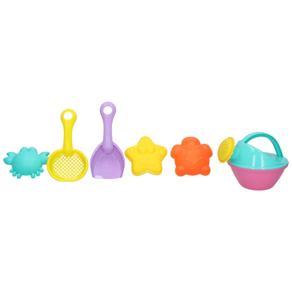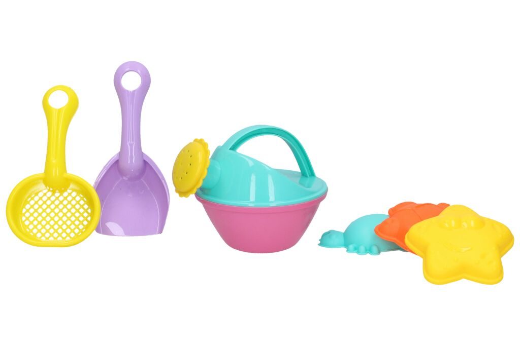 Sada na písek s konvičkou 6 ks. Rozměry 11x11x15 cm. Součástí konvička, sítko, lopatka, 3 formičky.